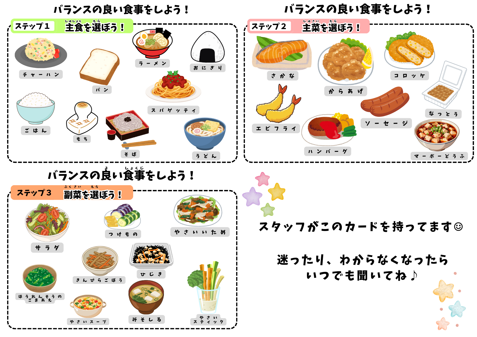 スタッフがいつでもこのカードを持っているから聞いてね♪