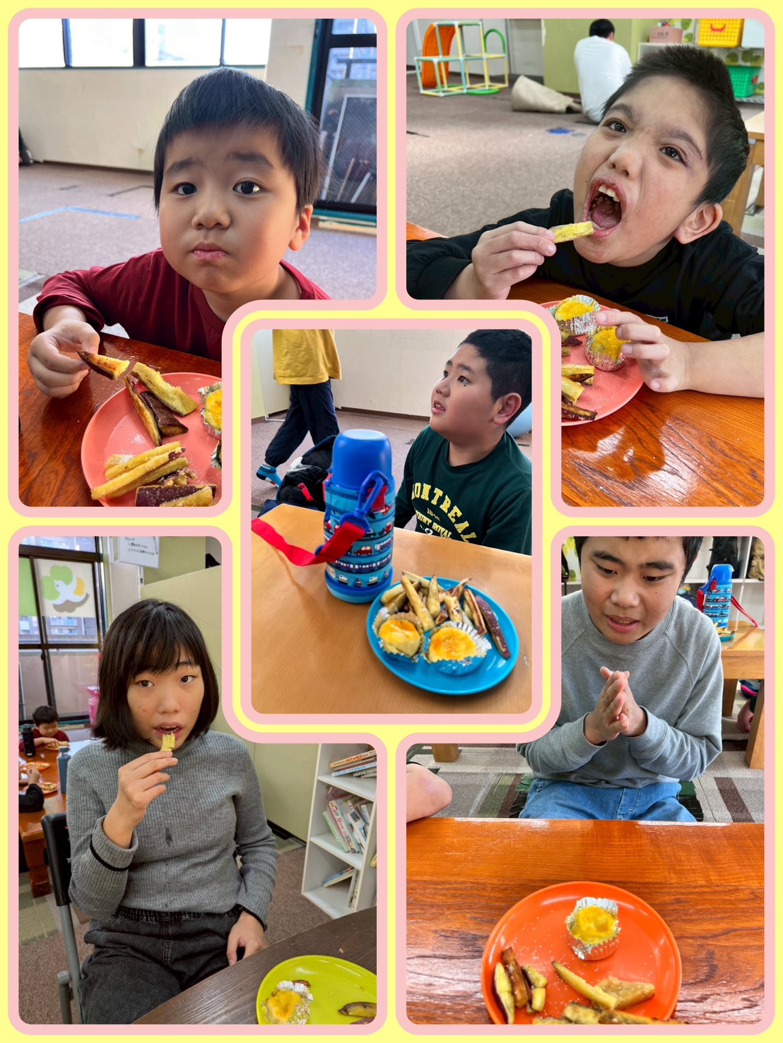 自分たちで作った揚げたてのサツマイモは格別だったようで、「カリカリしておいしい!」「もっと食べたい!」「おかわりする!」と大好評でした!