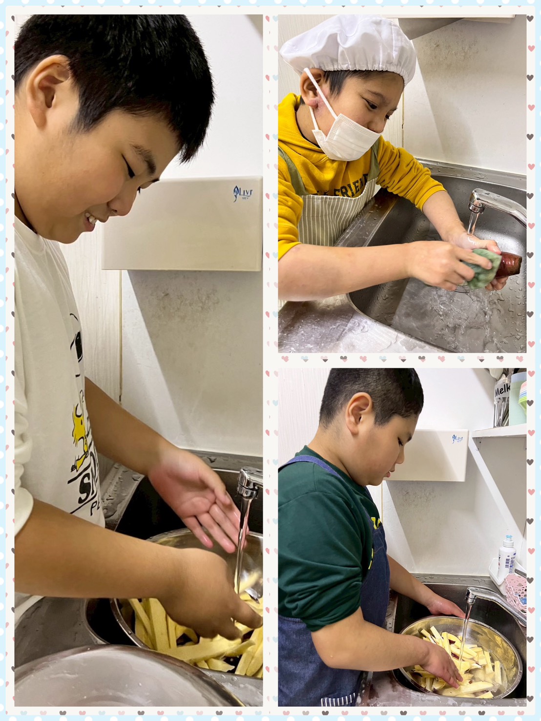 今回は、おやつ作り。10月にセン北のレクで掘ってきた秋の味覚さつまいもを使い