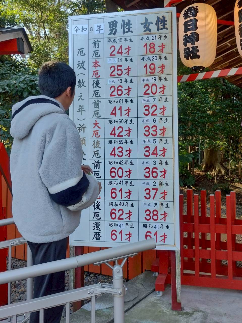 神社にはお参りする場所だけではなく、厄年の表や絵馬があるんだね🐎