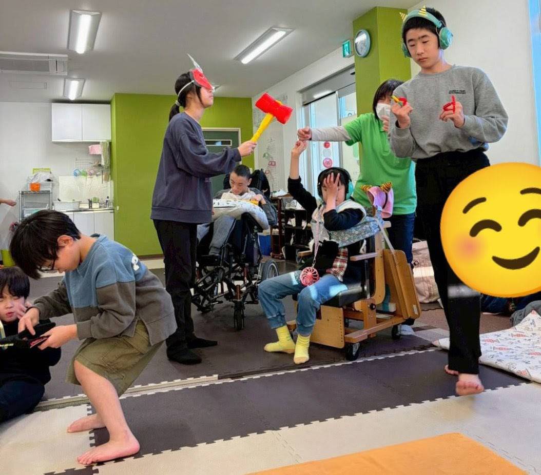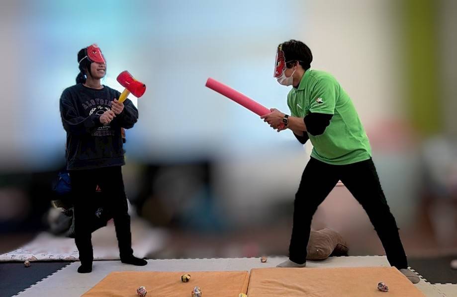 小さい鬼と大きい鬼が来て事業所内が賑やかな雰囲気になりました✨
