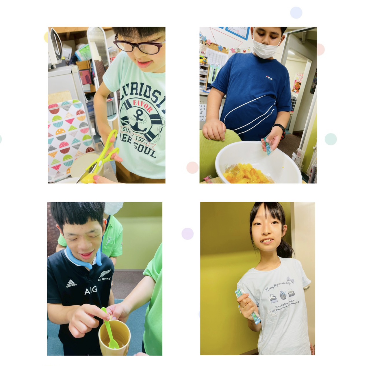 全ての準備が揃ったら、容器にゼリーや、フルーツ、三ツ矢サイダーを入れてかんせい!
