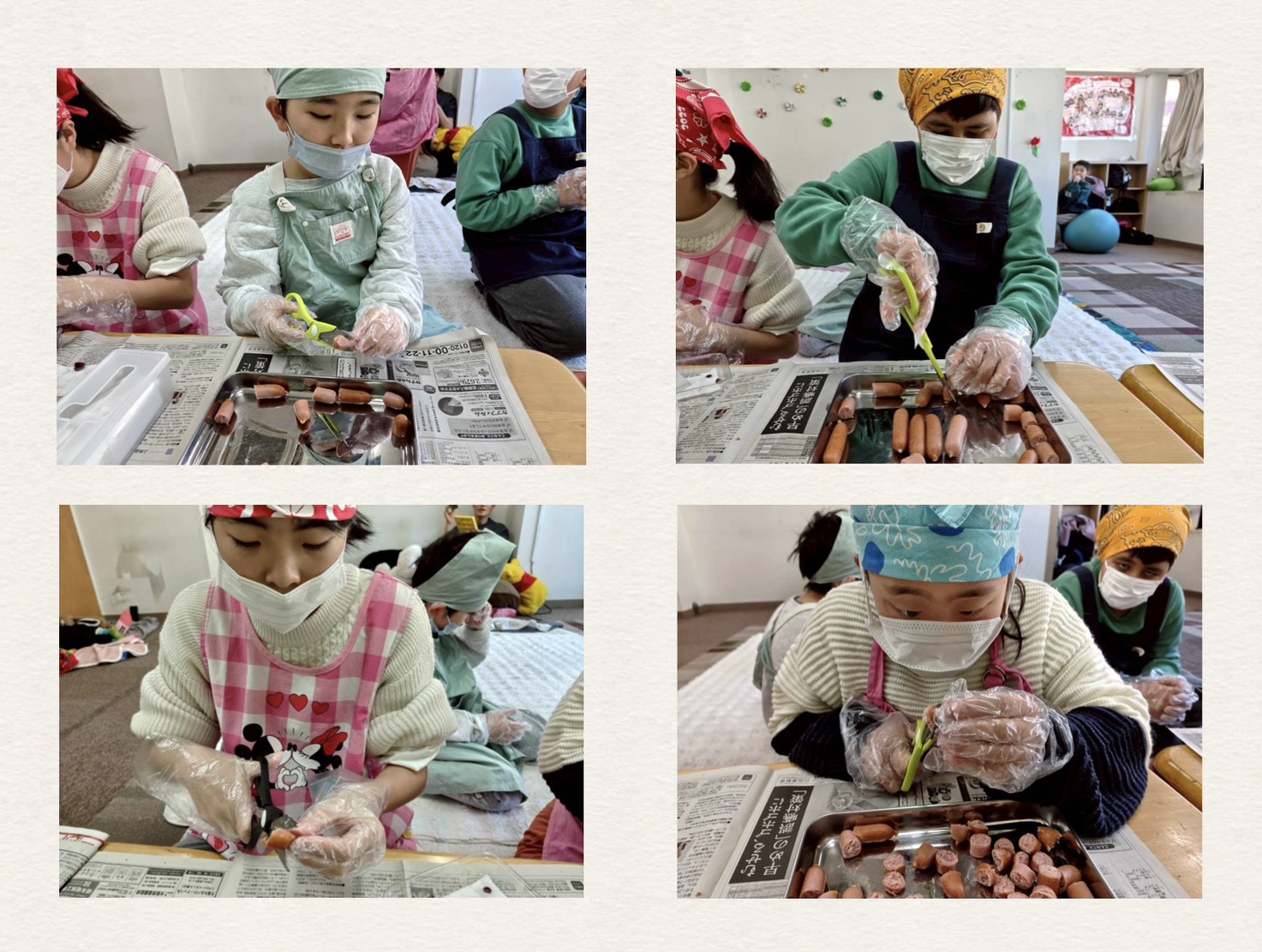 ウィンナーをハサミでチョキチョキ✂