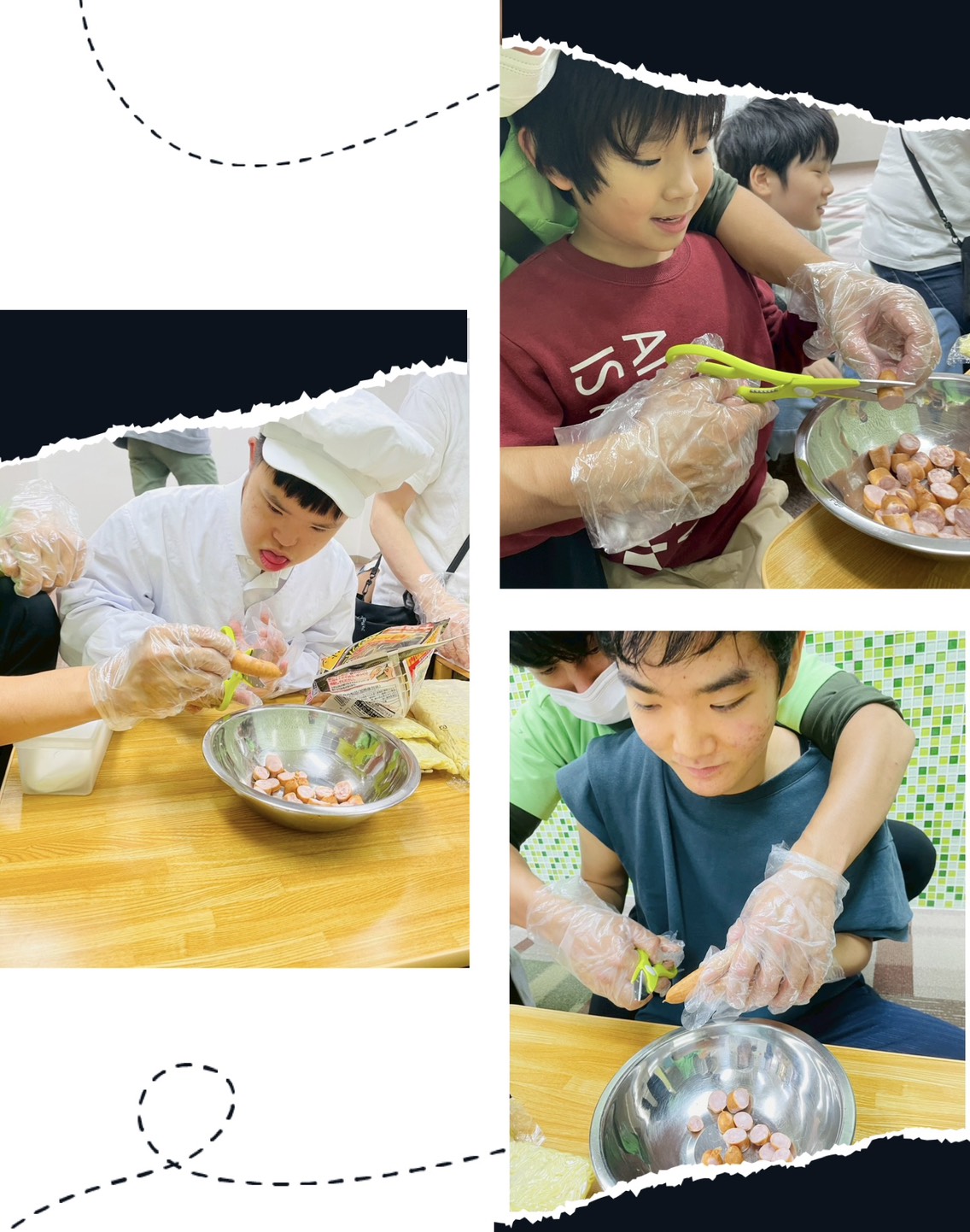 今回は、ウィンナーを使います!ハサミで小さく上手にカット✂