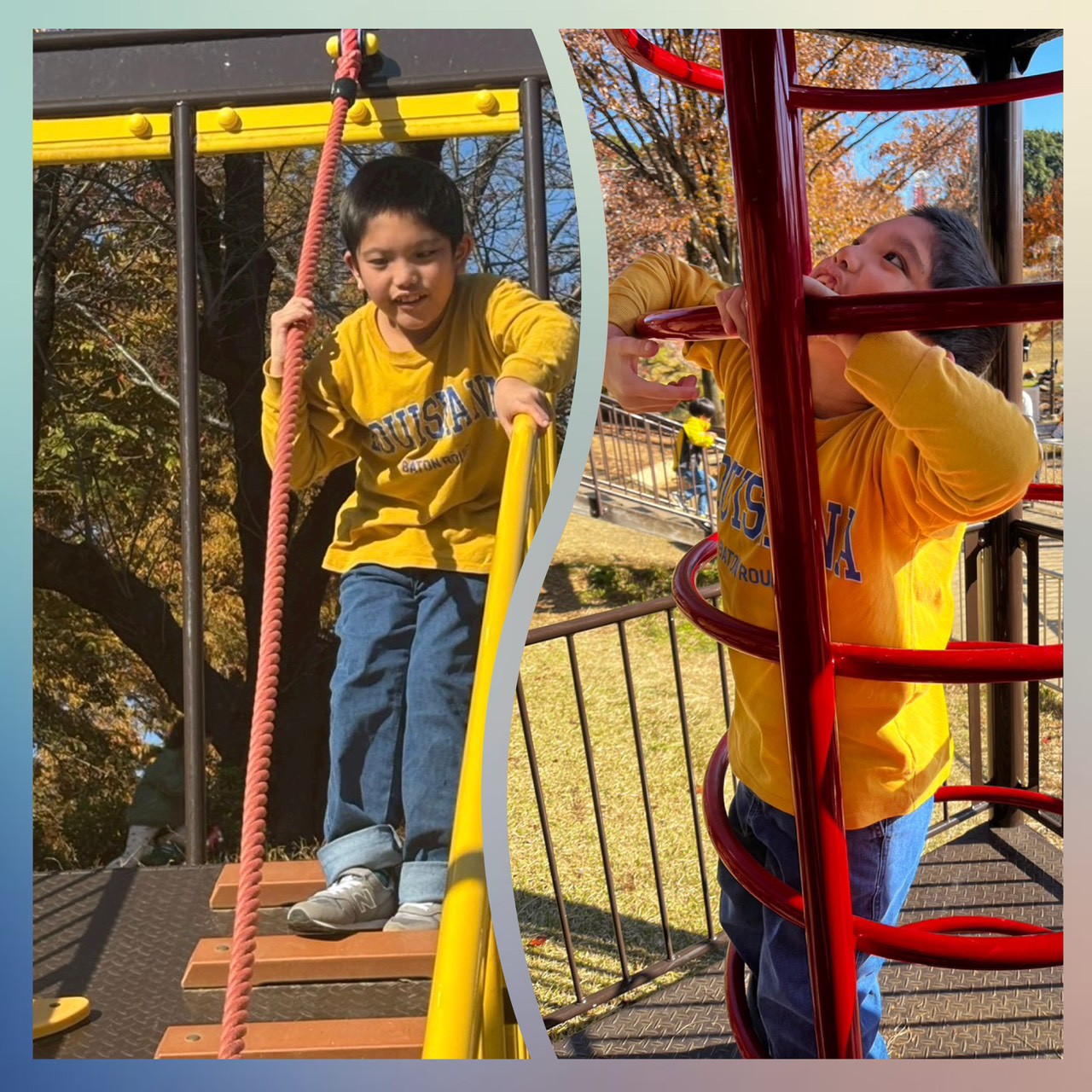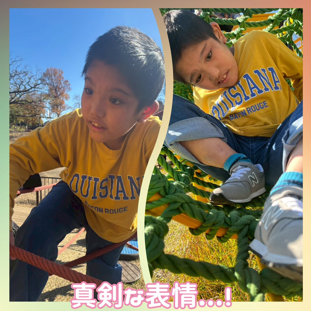 いつも遊んでるような親しんだ遊具もあれば、「忍者とりで」というだけあって難易度高めな遊具も、、、