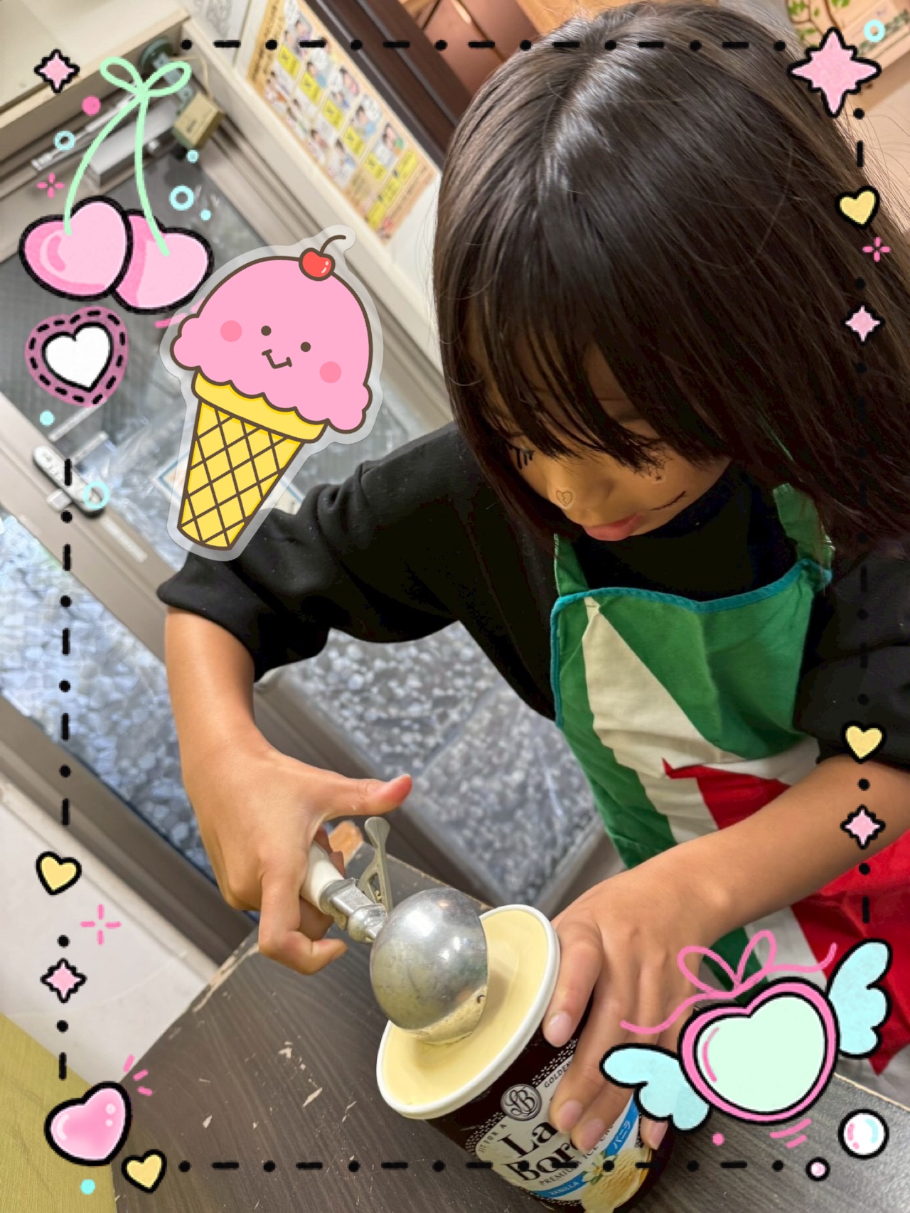 アイスも溶けてしまうので、せかせかとテーブルに運んで…