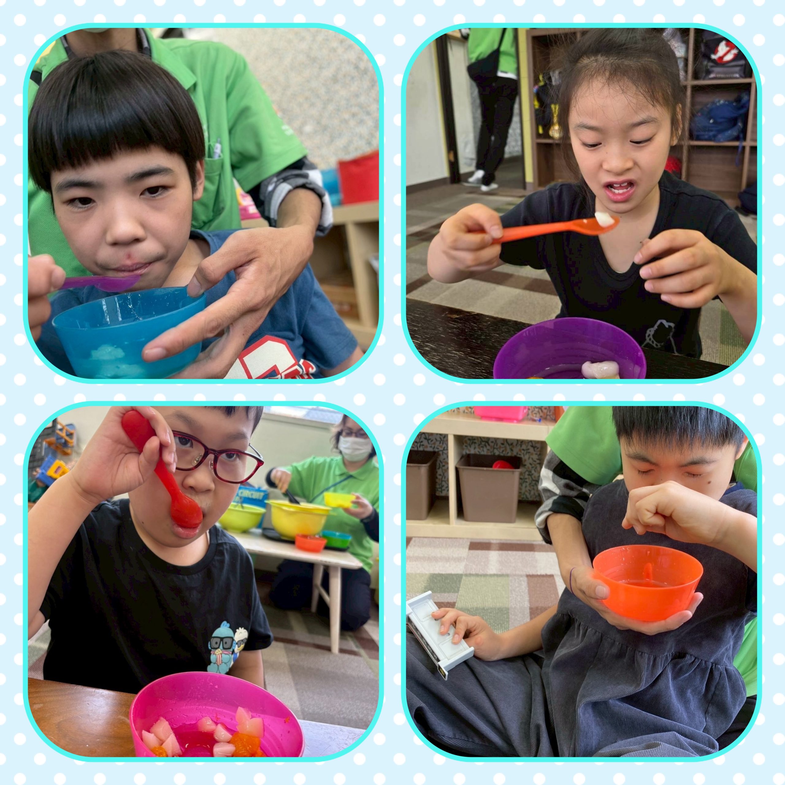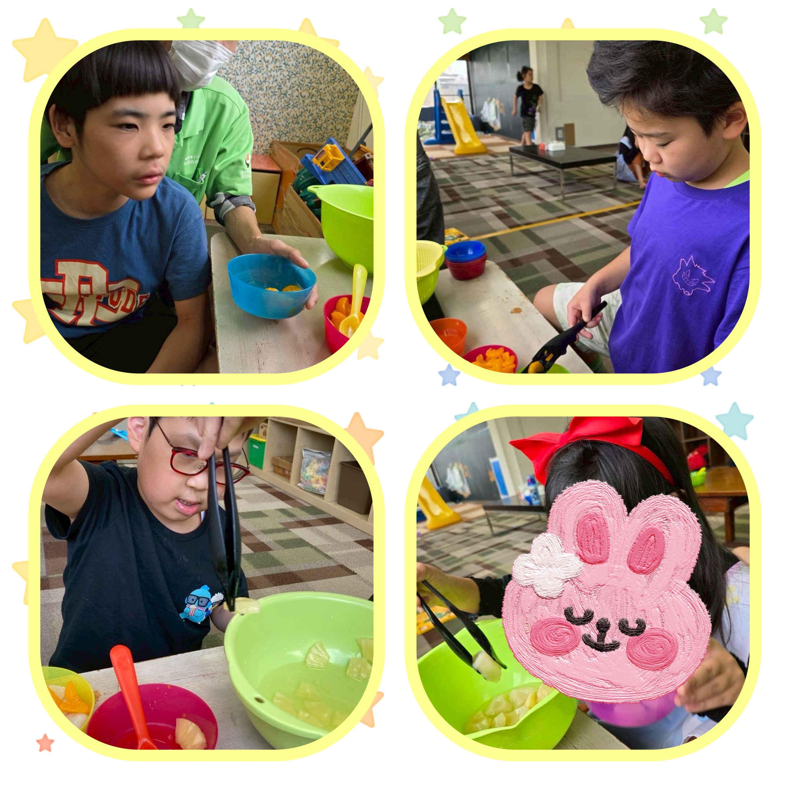 完成した白玉とフルーツを自分たちでセレクトし…