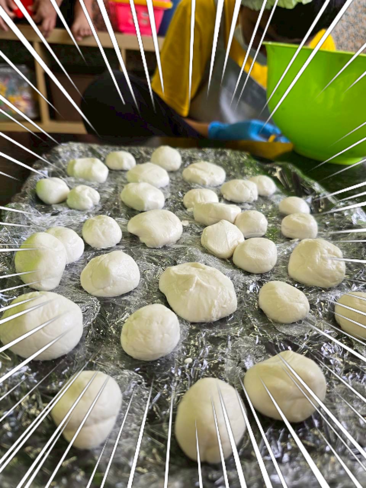 生地にまとまったら、一口大サイズにちぎり、丸めていきます!