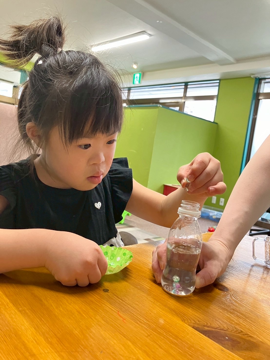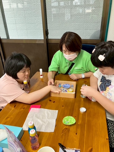 みんな丁寧にビーズをつまみ、一粒ずつボトルに入れてくれました。