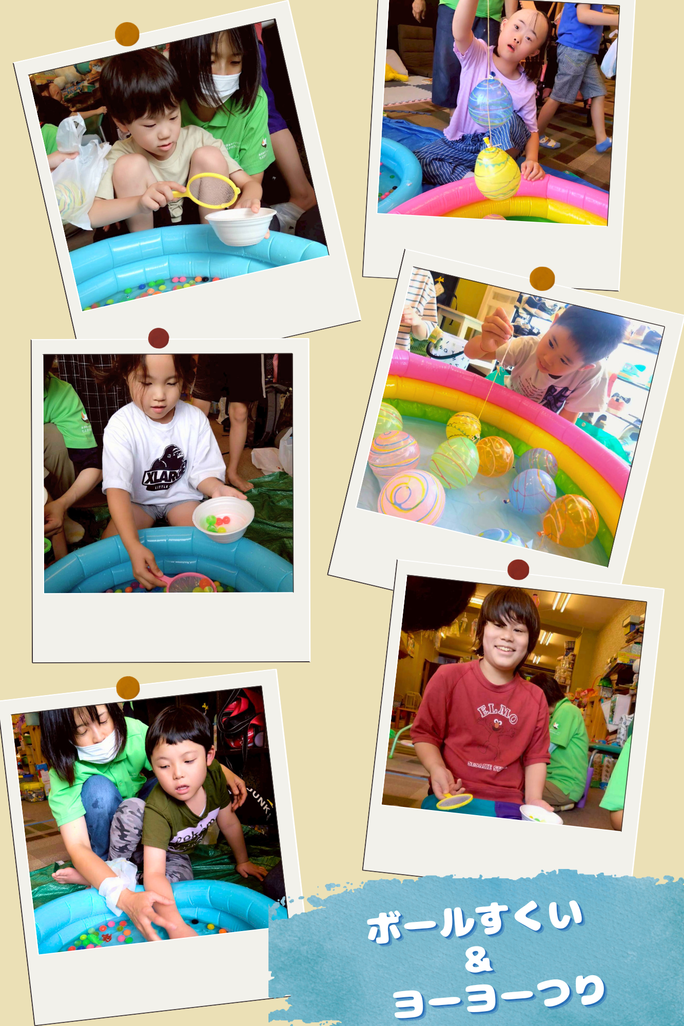 ボールすくい、ヨーヨー釣り、輪投げ、わたあめ、そしてフランクフルトなども出店しました〜!🎐🌞