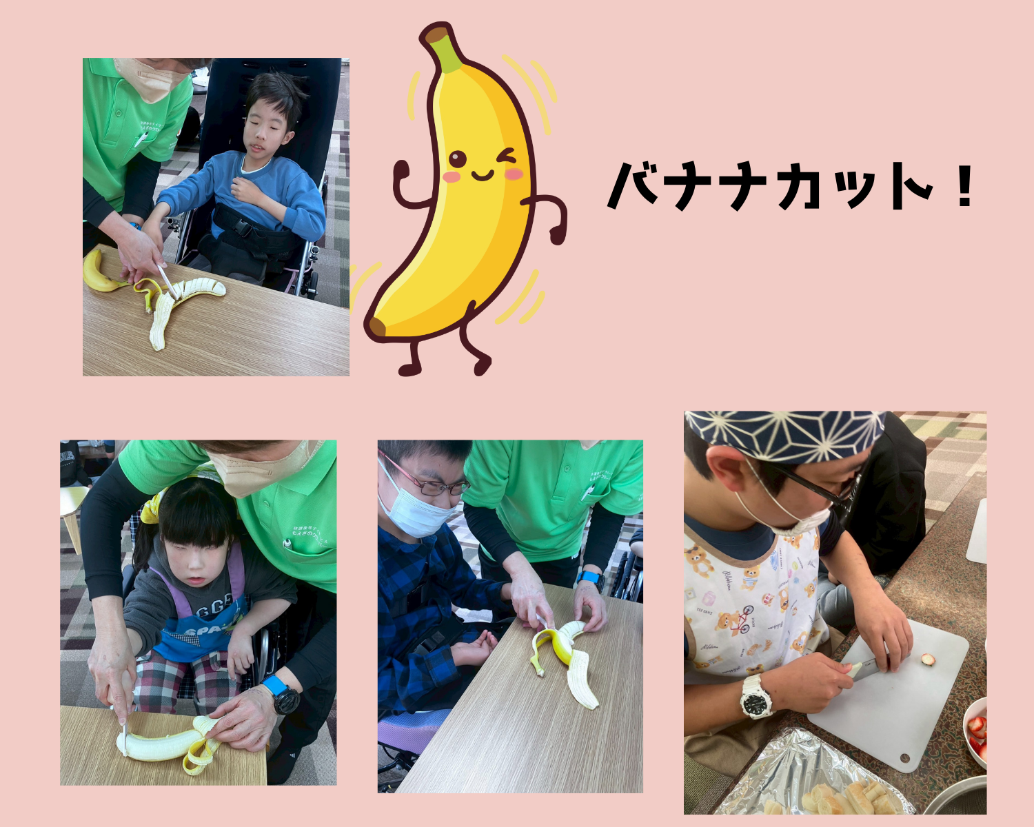 はい次!チョコと仲良しのバナナをカットカット!(あまい香りしました♪)