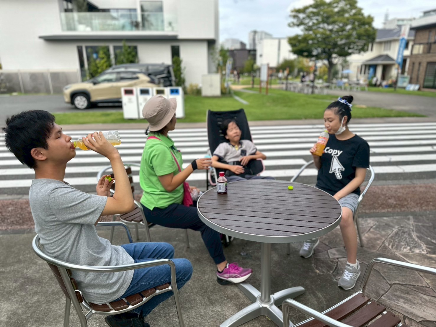 おいしい~外でみんなで飲むジュースはおいしかったの巻でした♪