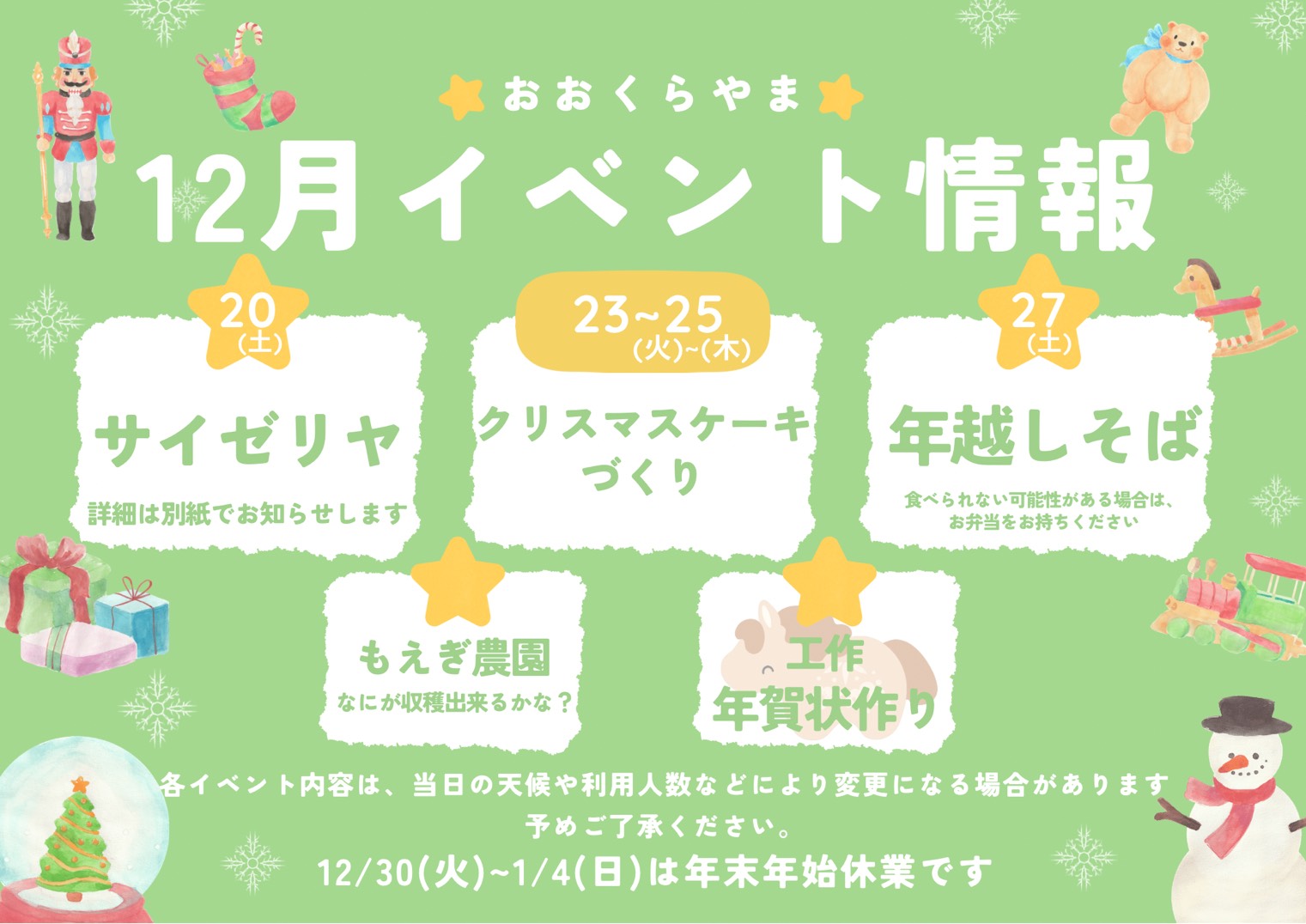●イベント内容や持ち物についての詳細は別紙にて配布させていただきます 。
