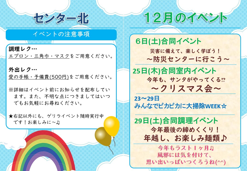 もえぎのクローバーセンター北の12月のイベントのご案内になります。
