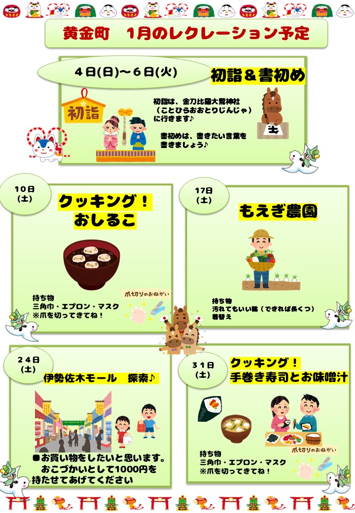 ※参加される方には、それぞれご準備いただきたいものをレクレーション予定に記載してますので